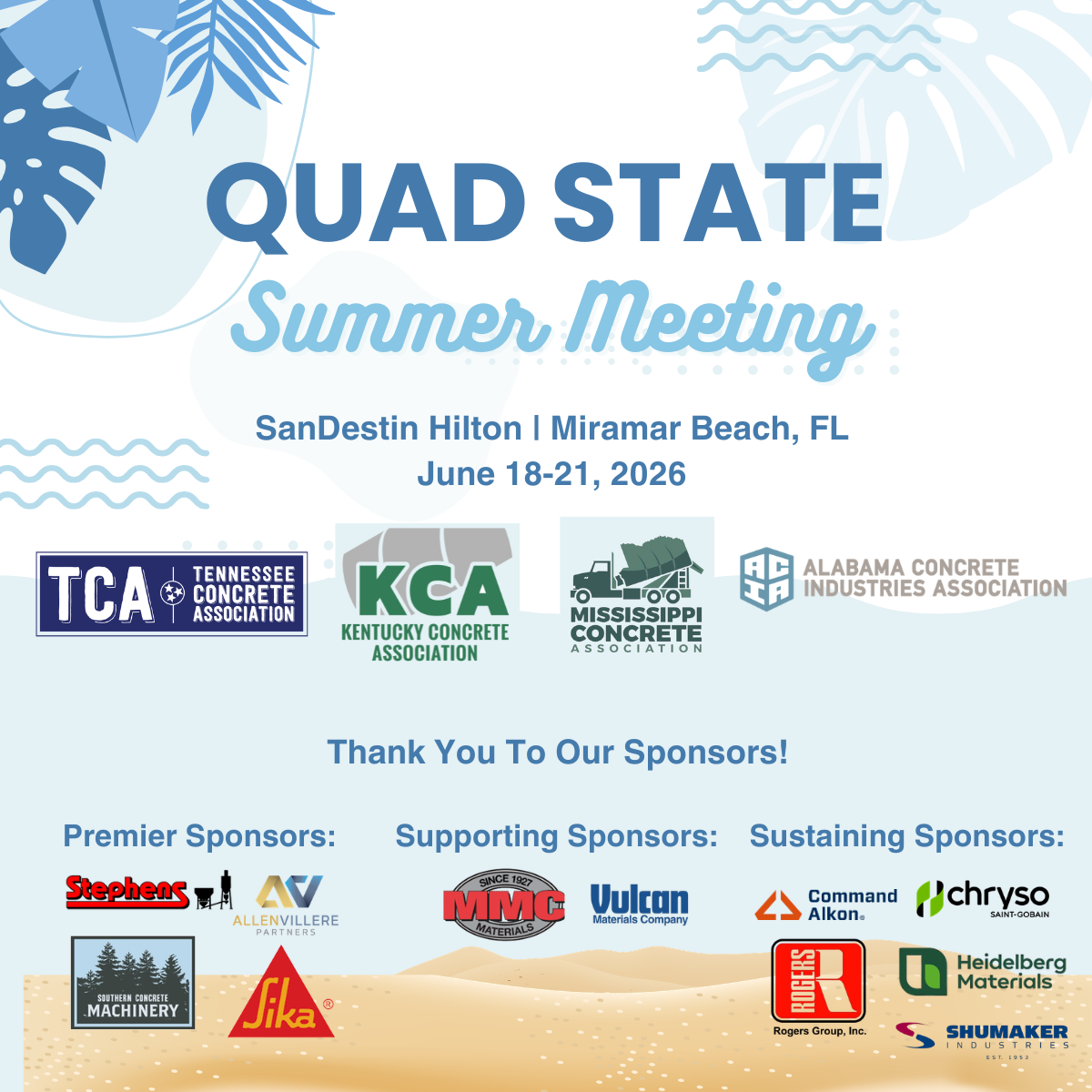 Quad-State Summer Meeting at the beach where Alabama, Kentucky, Mississippi and Tennessee members gather to network, learn and have fun! June 18-21, 2026.